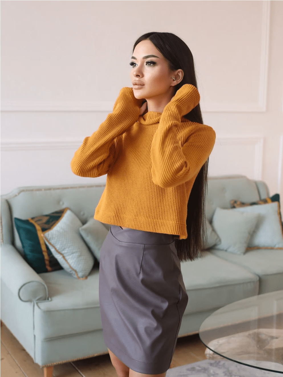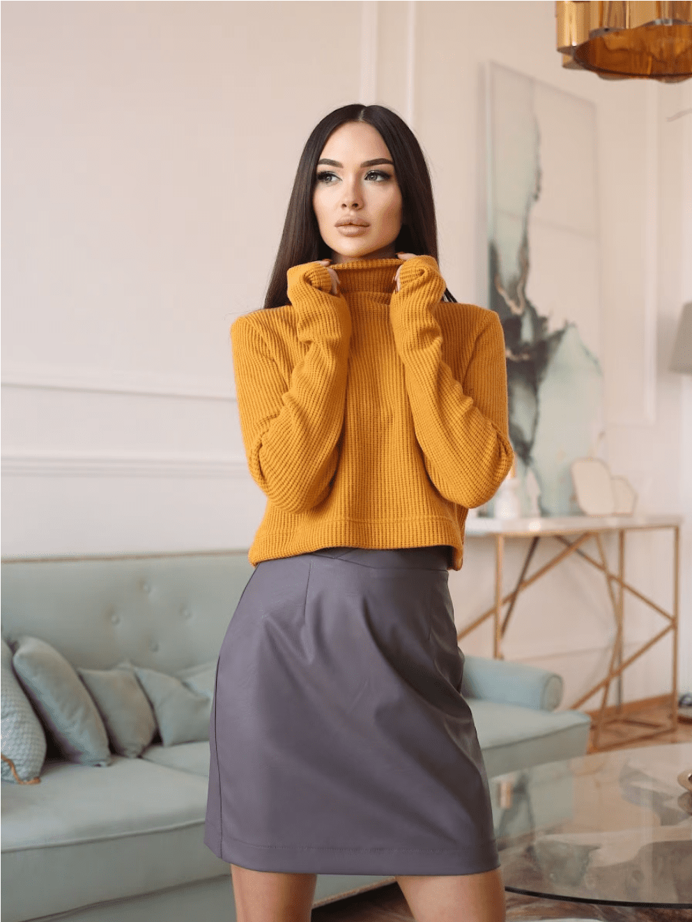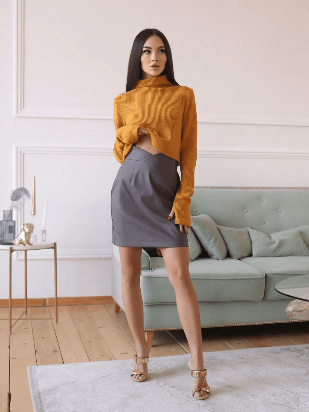 Хит 2022 Зима-весна и Весна-лето юбка кожаная из стрейч-кожи Anna Queen c завышенной талией — великолепно подойдет как кожаная юбка в офис или базовая юбка для делового, повседневного и вечернего образа.Короткая юбка карандаш зрительно утоньшает талию. Корректирующая вставка утягивает и скрывает живот; вытачки зрительно округляют бедра; длина позволяет отнести юбку к категории юбок мини и миди. Базовая юбка из кожи сочетается с футболкой, рубашкой, кроп-топом, вязаным свитером. Юбка сочетается как с каблуками, так и с кроссовками. Стильная женская юбка из экокожи, юбка из кожзама, кожаная юбка — в ней вы будете выглядеть стильно в любой ситуации. Приглашаем вас пройти по бренду и посмотреть весь ассортимент нашей женской одежды. Мы каждый сезон шьем актуальные трендовые новинки сезона. Подписывайтесь на бренд повседневной и офисной женской одежды Anna Queen и всегда будете знать о модных новинках сезона. Подписавшись, вы первыми узнаете о поступлении кроп-топов как на фото.